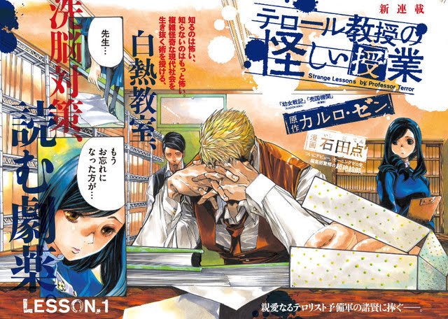 A revista Morning, da Kodansha, estreou nessa quinta-feira uma nova série em suas páginas, intitulada Terror-kyōju no Ayashii Jugyō (As Estranhas Lições do Professor Terror), cuja autoria é de Carlo Zen, autor da novel de Youjo Senki, e de Ten Ishida, que cuidará das ilustrações.